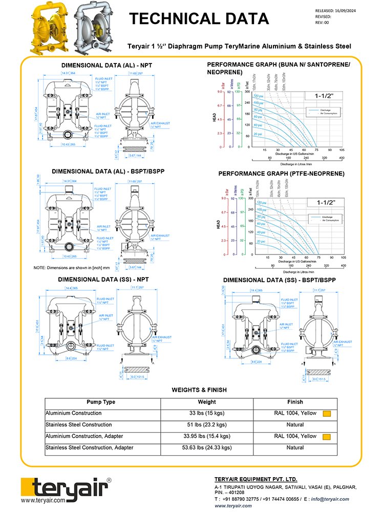 Aluminium pumps are commonly combined with Nitrile, Santoprene or PTFE Elastomers. With these elastomers they are ideal for pumping of water and water-based fluids, non-aggressive fluids, oily fluids and fluids having low acidic or alkali concentrations Aluminium Pumps offer a relatively low-cost solution to many pumping applications. For this purpose, the main industries that choose Aluminium pumps are Paints, Marine, Mining, Ceramic and Wastewater/Pollution management.